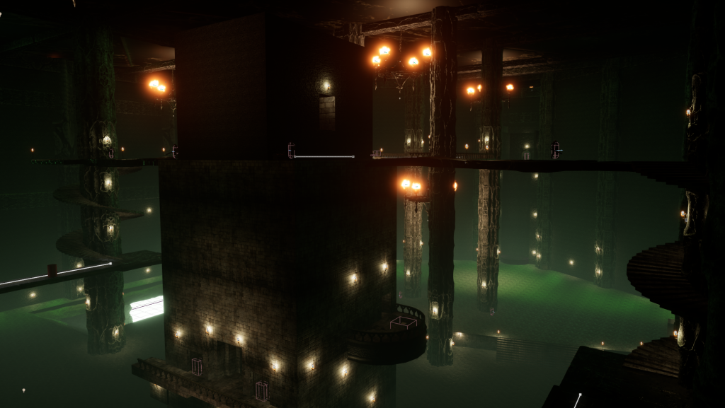 This thesis explores how verticality shapes the player experience in Action RPGs, combining theory and practice. I studied key works in level design and game studies — including An Architectural Approach to Level Design (Totten), Level Up! (Rogers), A Theory of Fun (Koster), and A Practical Guide to Level Design (Bauer) — to build a solid theoretical foundation. Alongside case studies from Dark Souls, Elden Ring, and Dishonored, these texts guided the design of a multi-layered dungeon prototype in Unreal Engine 5, set within a Dark Fortress. The project investigates vertical connections, shortcut systems, and layered navigation to craft spaces that reward exploration and foster immersion.